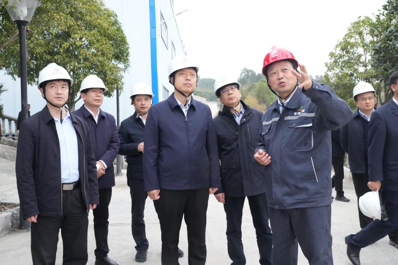 12月2日,湘西州委书记刘涛到麻豆av 古丈县宏源钒业有限责任公司,就钒产业链项目建设情况进行调研。州委常委、州委秘书长向邦伟,集团党委书记、董事长肖志勇,党委副书记、总经理董巍陪同调研。