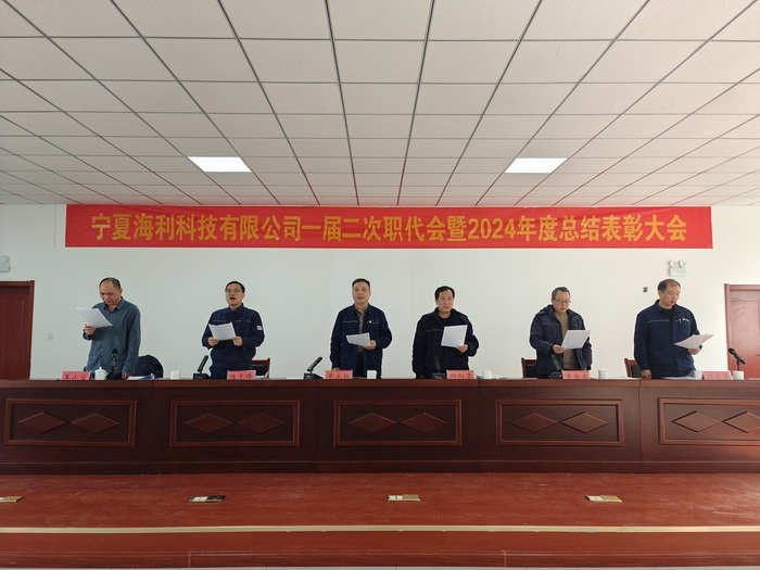 1月21日上午,宁夏海利公司召开一届二次职代会暨2024年度总结表彰大会。海利股份公司副总经理、宁夏公司董事黄永红,党支部书记、总经理邱向霖出席会议并讲话,党支部委员陆先锋主持会议。