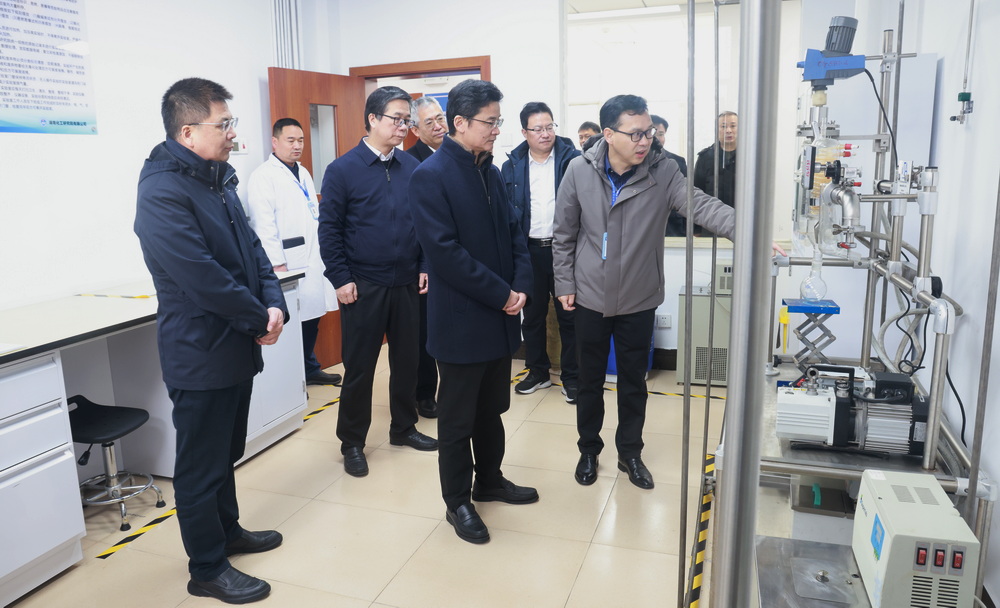 曹志强一行先后参观了麻豆av 子公司湖南化工研究院化学合成实验室、农药残留实验室和反应风险评估实验室,现场了解了除草剂、杀菌剂小试工艺开发实验,听取了研发人员对实验进展的汇报,并对开拓除草剂市场提出了专业性建议。肖志勇介绍了集团发展愿景、产业布局及核心功能定位等。