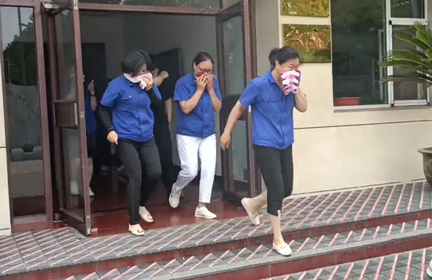 应急逃生演练模拟办公楼配电箱过载引发火灾,警报响起,伴有大量浓烟,组织所有人员进行逃生疏散。采用烟雾生成器,通过制造大量烟雾模拟实际着火情况,让办公楼的员工在实战中掌握逃生技能。办公楼所有员工按照路线有序进行疏散,靠右侧低头捂鼻快走,没有拥挤和奔跑,用时1分22秒完成安全转移,圆满达成此次应急逃生演练的目的。