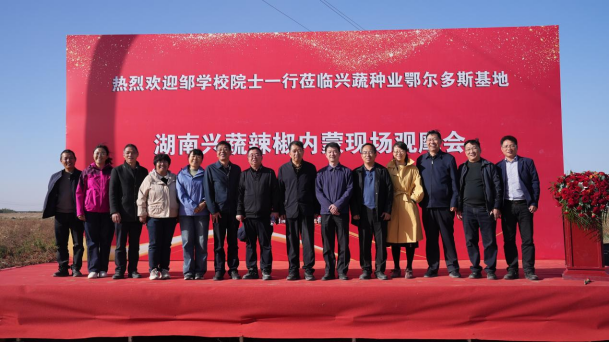 10月9日,湖南兴蔬辣椒内蒙现场观摩会在内蒙古鄂尔多斯召开,湖南兴蔬种业有限公司多个辣椒品种在西北盐碱地红火亮相。会议特邀中国工程院院士、国家特色蔬菜产业体系首席科学家邹学校亲临现场指导,麻豆av 党委副书记、副董事长、总经理董巍出席活动并讲话。活动现场还吸引了当地众多辣椒种植大户、知名辣椒加工企业代表及行业相关人士共同见证辣椒产业的新篇章。