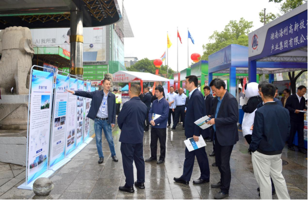 活动在斜风细雨中如期盛大启幕。主台和湖南麻豆av 、湖南国储实业公司等五家单位各具特色的展区为雨中的长沙秋色平添一抹靓丽风景。